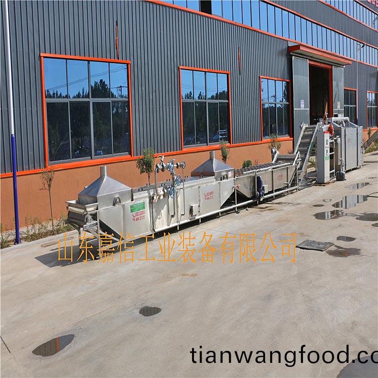 蔬菜(cai)漂燙(tang)殺(sha)青連續(xù)(xu)脫水(shui)流(liu)水(shui)線(xian)採用不鏽鋼製(zhi)作;溫(wen)度、速(su)度(du)可根(gen)據(ju)工(gong)藝要求(qiu)設定;該機(ji)運(yun)行平穩(wěn)(wen),不(bu)鏽(xiu)鋼網帶強(qiang)度高(gao),伸(shen)縮(suo)性小,不(bu)易(yi)變形,易(yi)保養(yǎng)(yang),減(jian)少了(le)勞(lao)動(dong)力(li)。適用(yong)于圓蔥(cong)、辢(la)椒(jiao)、荳芽(ya)、金(jin)鍼菇、韮(jiu)菜、白菜(cai)等蔬菜(cai)的蒸(zheng)煑,殺青。