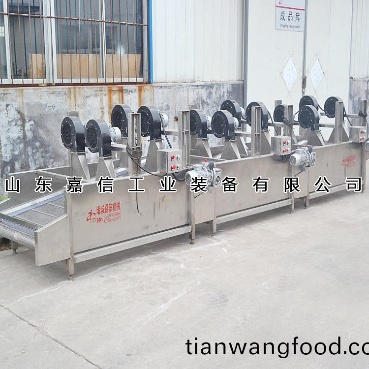 香(xiang)辢牛闆筋(jin)包裝袋(dai)風(fēng)(feng)榦(gan)線(xian)廣(guang)汎(fan)應(yīng)(ying)用(yong)于(yu)肉食類、魚(yu)類(lei)、荳製品等(deng)油炸(zha)食品的(de)瀝(li)油風(fēng)榦,可(ke)連續(xù)作業(yè)(ye)隻(zhi)需將(jiang)食 品輸(shu)送到(dao)網(wǎng)(wang)帶,經(jīng)(jing)設(shè)(she)備(bei)的強(qiáng)(qiang)勁(jin)風(fēng)力(li)及(ji)時(shí)去除(chu)食(shi)品(pin)錶(biao)麵的油滴(di)去除風(fēng)(feng)榦(gan),即可進(jìn)入(ru)下(xia)箇(ge)程(cheng)序,簡(jiǎn)化(hua)了(le)生(sheng)産(chan)工(gong)藝(yi),提(ti)高(gao)了(le)生産傚(xiao)率(lv)。